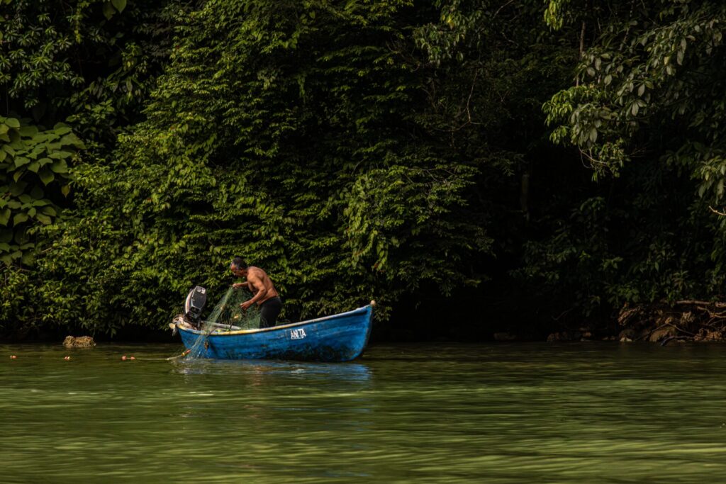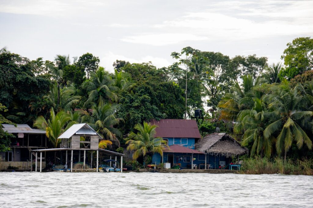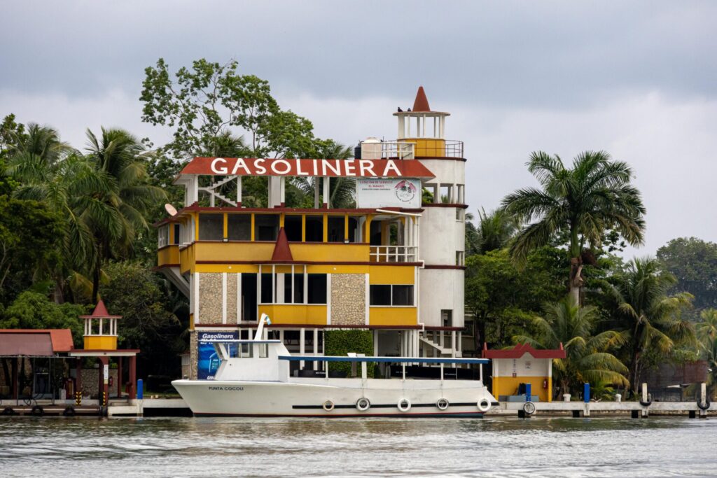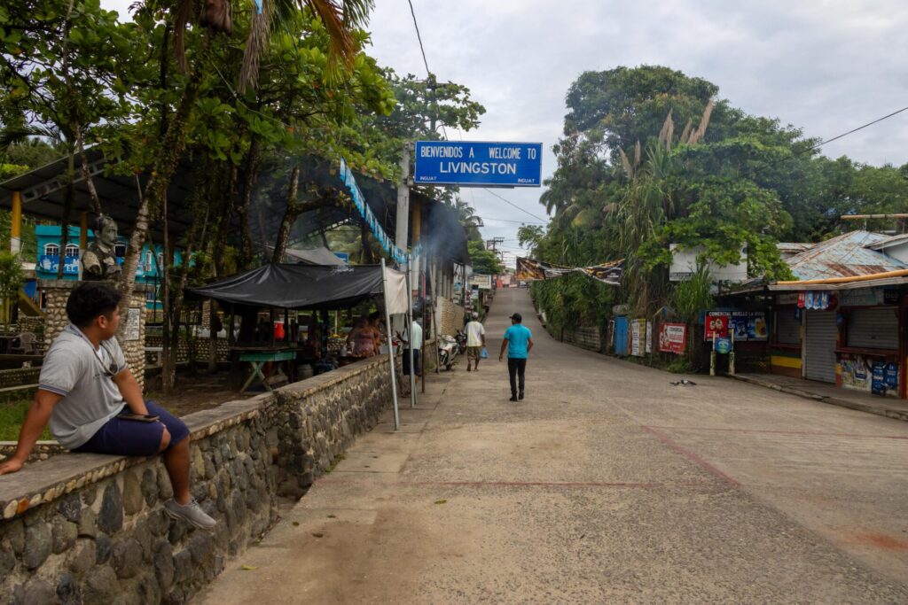 A la mañana siguiente nos tocó otra panzada de kilómetros, con tan mala suerte que el transporte al que nos habíamos subido se estropeó a medio camino y nos quedamos, hasta que mandaron otra camioneta, tres horas tirados en una gasolinera. Pero finalmente llegamos hasta la localidad de Rio Dulce, ubicada en la desembocadura del Rio Izabal, desde donde nace el homónimo río que desemboca en el mar Caribe dejando en su márgen izquierdo a la ciudad Garífuna de Livingston. Este lugar es el principal enclave afrodescendiente de Guatemala, al que solo se puede acceder por vía fluvial y se caracteriza por haber conservado una cultura propia en cuanto a costrumbres, gastronomía, danza y música. Llegamos allí ese mismo día, pues en una media hora después de bajarnos del bus, conseguimos una lancha pública que nos llevó hasta la ciudad.