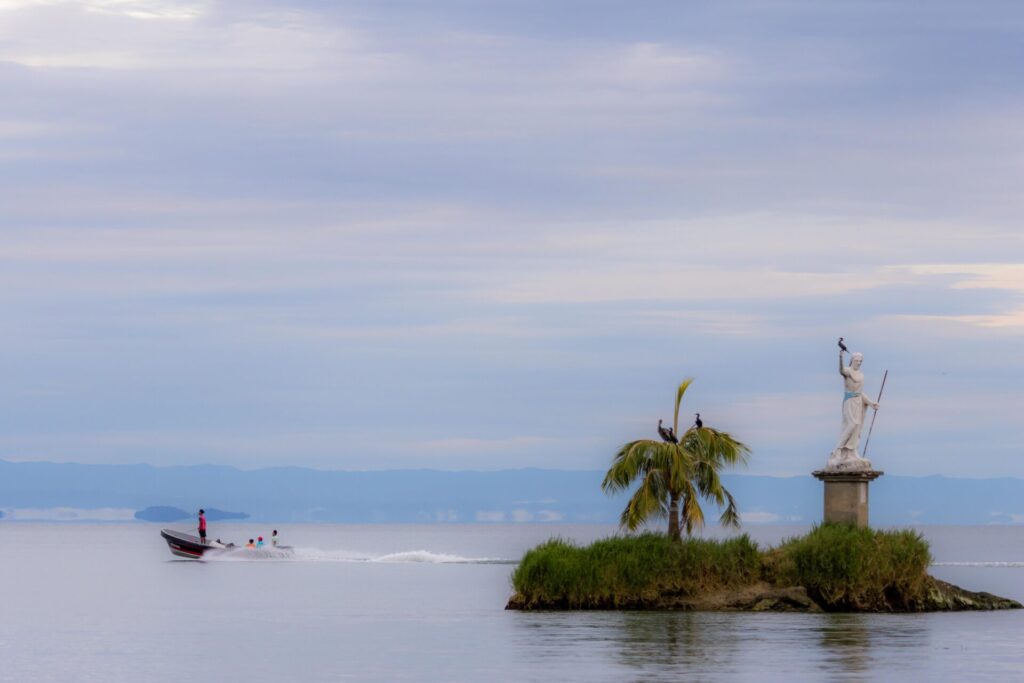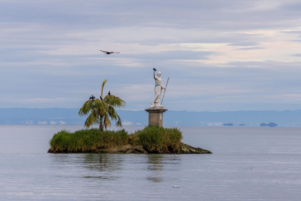 Como ya había averiguado en mi primera visita a esta localidad, no es que haya monumentos ni sitios históricos de gran importancia que visitar, lo importante aquí es la cultura y la tradición. Sin embargo, en medio de la Bahía de Amatique, donde se encuentra esta población, hay una estatua de “El Salvador del Mundo” construida sobre unos peñones rodeados de agua. Desde lo lejos parece más un Poseidón que una estatua católica, pero no podía irme sin acercarme para verla en persona.