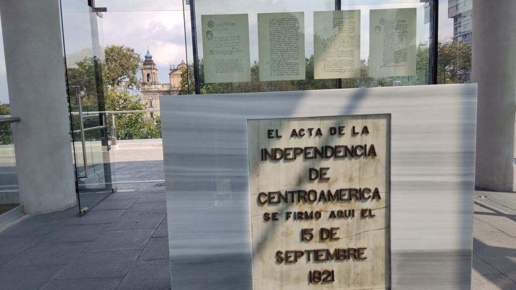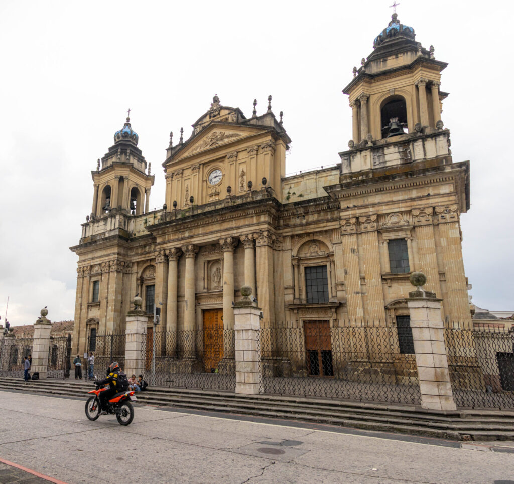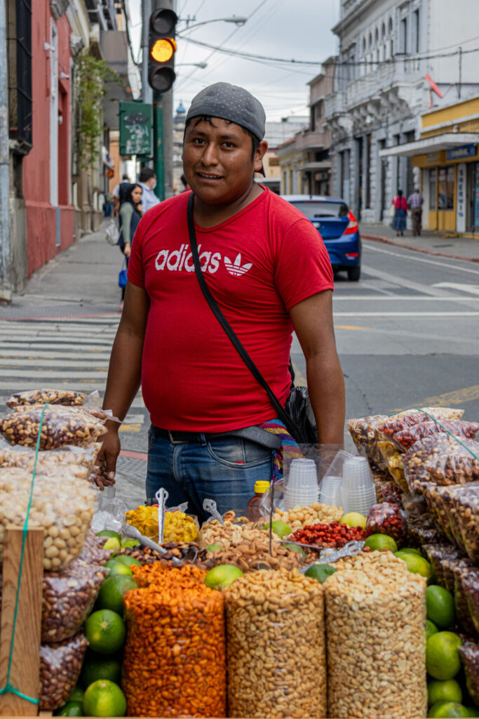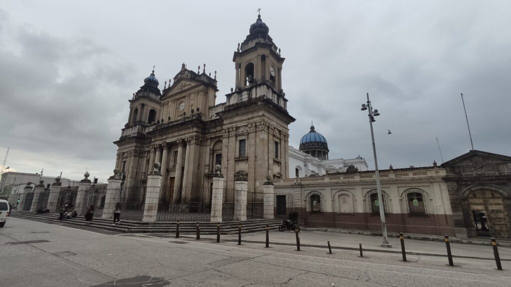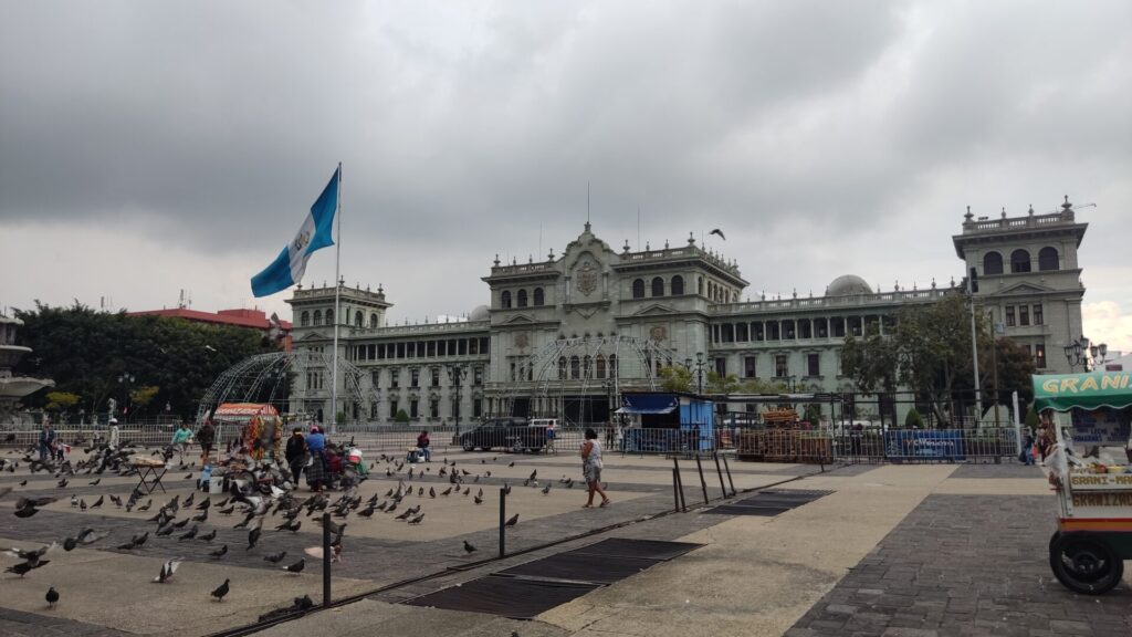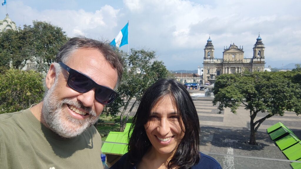 En Ciudad de Guatemala hicimos un free tour por el centro que fue muy interesante. Yo no conocía realmente la ciudad y nunca había paseado por allí; me sorprendió gratamente. Parece que en los últimos años se ha trabajado duro por recuperarlo, y lo están logrando. Paseamos por el Parque Central, vimos la catedral y el palacio nacional (al que no pudimos entrar porque estaba cerrado), entramos en el magnífico mercado central y compramos algunas artesanías. También recorrimos la avenida peatonal, llena de cafeterías y comercios, muy transitada y con mucha vida callejera. Y entramos al Pasaje Rubio, una galería comercial con mucha historia. En su entrada hay una placa conmemorativa al estudiante Oliverio Castañeda de León, uno de los líderes estudiantiles que participaron en la revolución del 44. Oliverio fue asesinado a tiros en este lugar y nunca se ha podido esclarecer quién fue el responsable. No obstante, él y otros estudiantes y trabajadores lograron que el ejército se revelase contra las eternas dictaduras que habían mantenido desde su independencia, logrando las primeras elecciones libres de Guatemala. En este pasaje se encuentra el restaurante El Portalito, fundado en 1932 y es el considerado más antiguo (y en funcionamiento) de toda la ciudad. Por aquí han pasado diversas figuras de Guatemala y del mundo, incluidos el Che Guevara y nosotros.